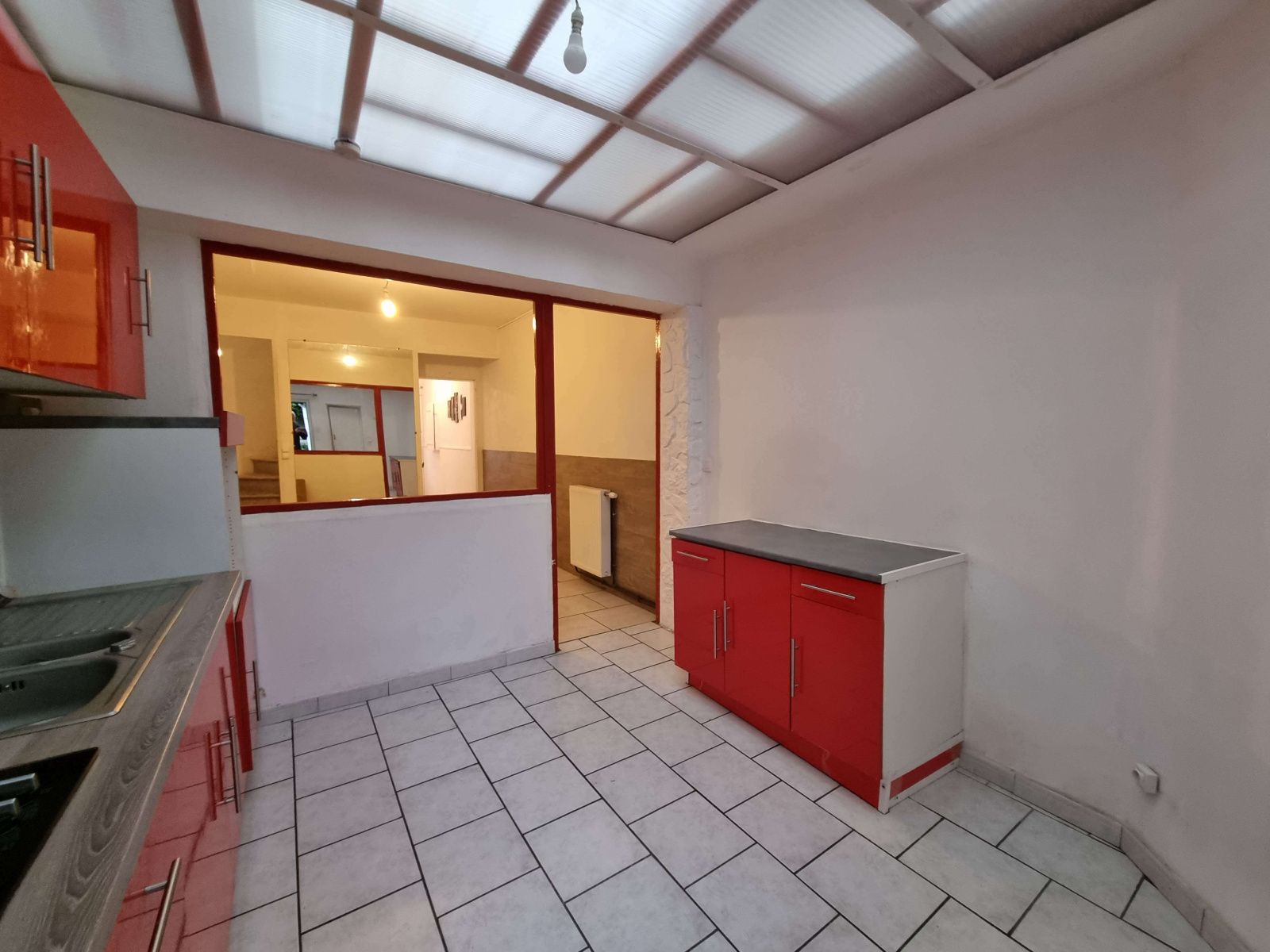A proximité de la gare, du centre ville et des écoles, maison de ville rénovée comprenant un hall d'entrée, salon, séjour, cuisine aménagée, salle d'eau, 3 chambres, bureau ainsi qu'une cour.