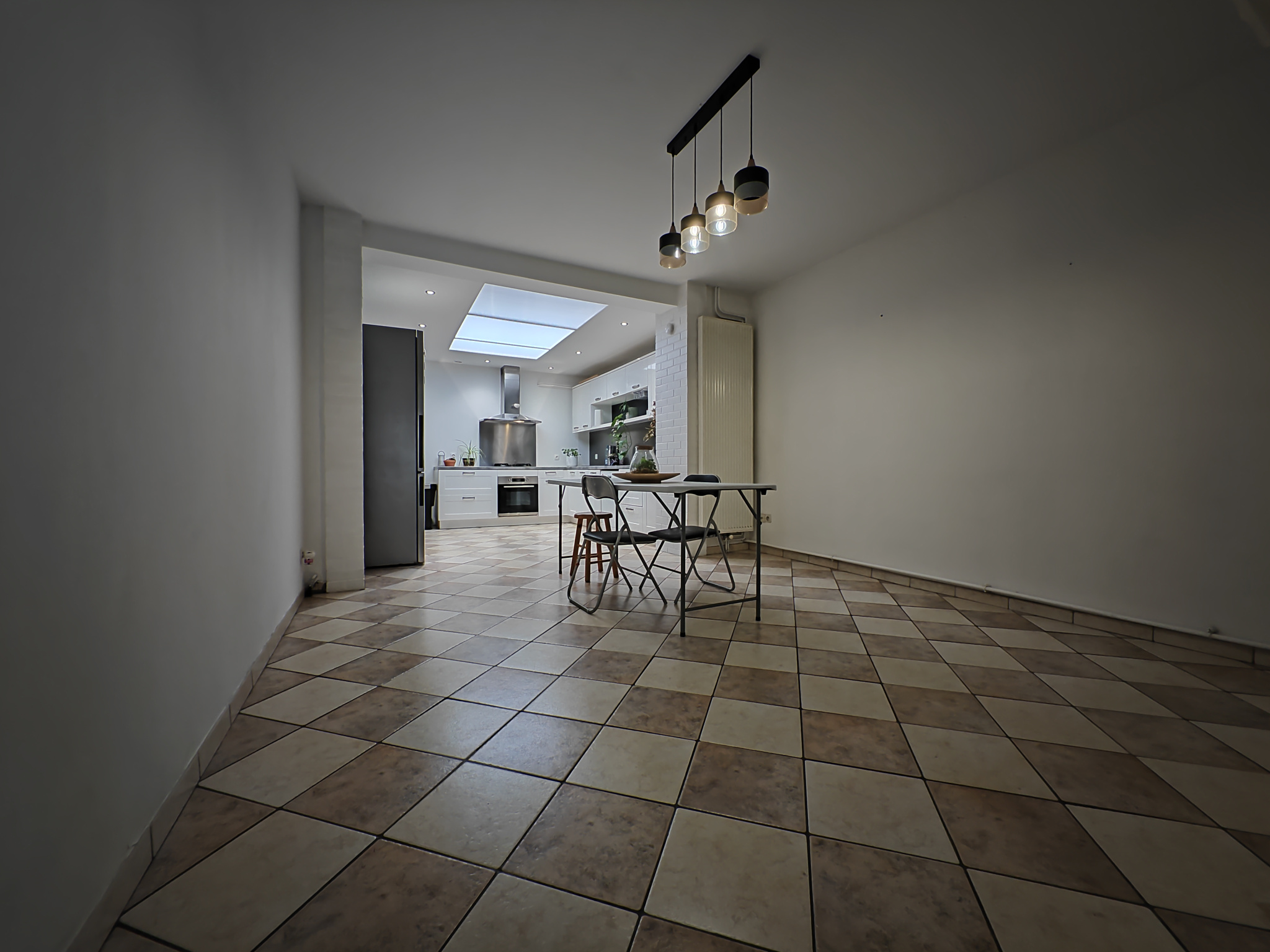 Au rez-de-chaussée, vous trouverez un salon ainsi qu’une salle à manger ouverte sur une cuisine entièrement équipée, formant un espace de vie convivial et lumineux. Une salle de bain, propre et fonctionnelle, complète ce niveau.