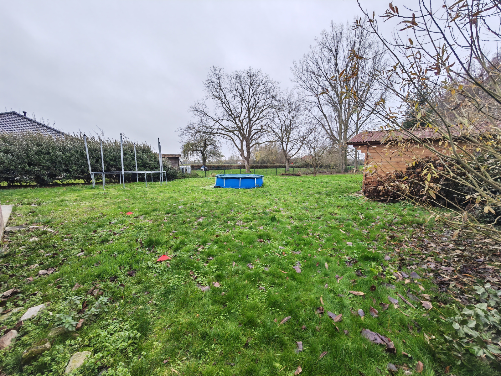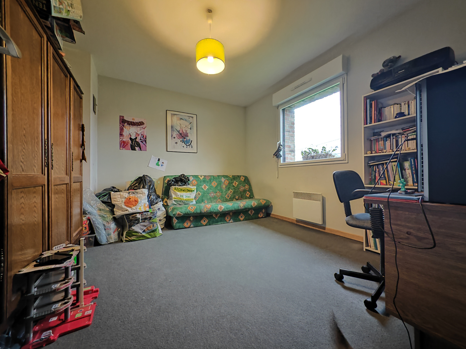 L’étage réunit trois chambres, ainsi qu’une pièce supplémentaire pensée pour accueillir une future salle d’eau ; celle-ci reste à terminer mais permet déjà d’envisager un second WC et un aménagement selon les besoins.