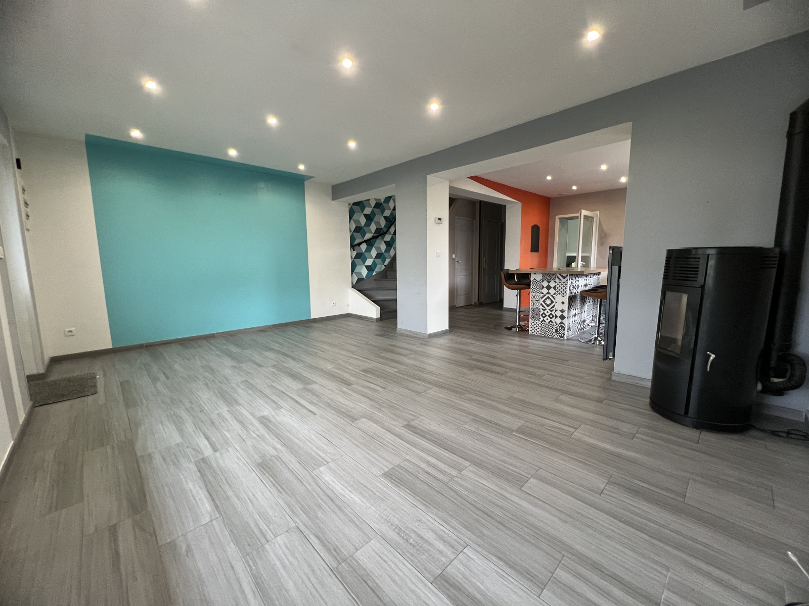 Hersin-Coupigny (62530)Charmante maison semi-individuelle entièrement rénovée ! Au rez-de-chaussée, vous découvrirez un vaste salon équipé d’un poêle à pellets, une cuisine ouverte équipée, un séjour, une buanderie ainsi qu’une salle de bain élégante avec douche à l’italienne et baignoire balnéo, sans oublier un WC séparé avec point d'eau. À l’étage, 3 chambres dont une avec dressing. La maison dispose également d'une cave et d'un extérieur d'environ 100m2 aménagé avec une terrasse bien exposée, idéale pour profiter des beaux jours. Aucun travaux à prévoir, il ne vous reste qu’à poser vos meubles ! Ne manquez pas cette opportunité !