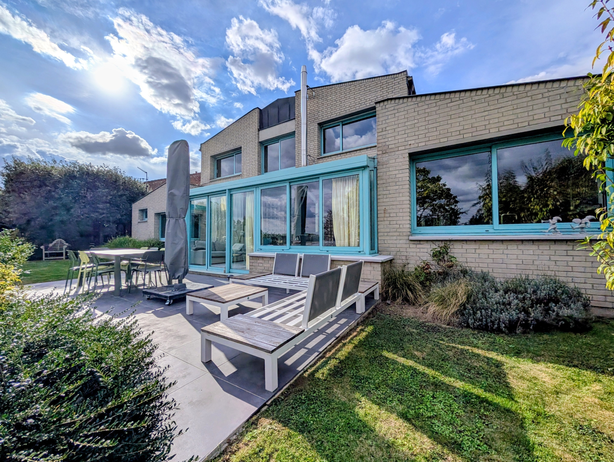 Magnifique maison d'architecte individuelle en semi plain-pied de 200 m² habitables, érigée sur plus de 1000m² de terrain, offrant une superbe vue dégagée sur la campagne.