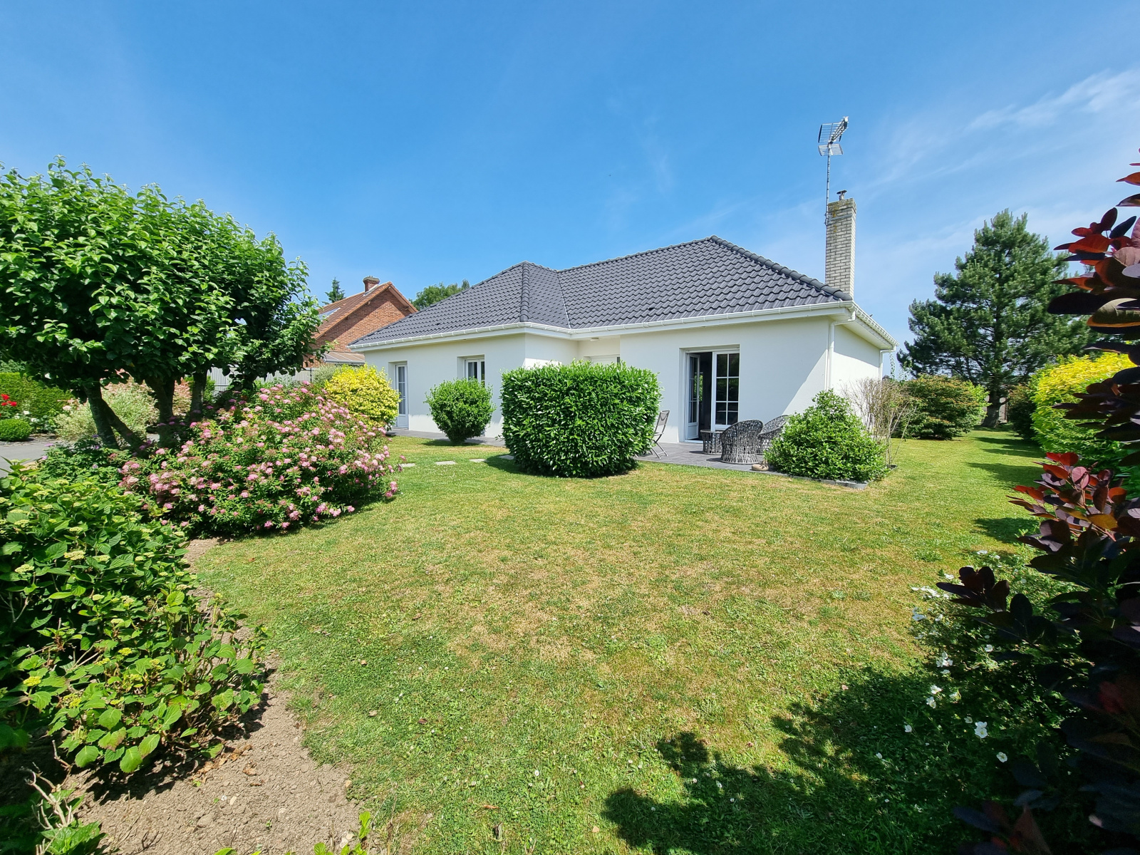Situé dans un secteur calme et verdoyant pavillon individuel de plain pied comprenant hall d'entrée, cuisine équipée ouverte sur le salon-séjour de 45m², 3 chambres de 12, 12 et 13m², buanderie, salle de bains, garage, terrasse ainsi qu'un jardin. Le tout bâti sur 1200m² habitables.