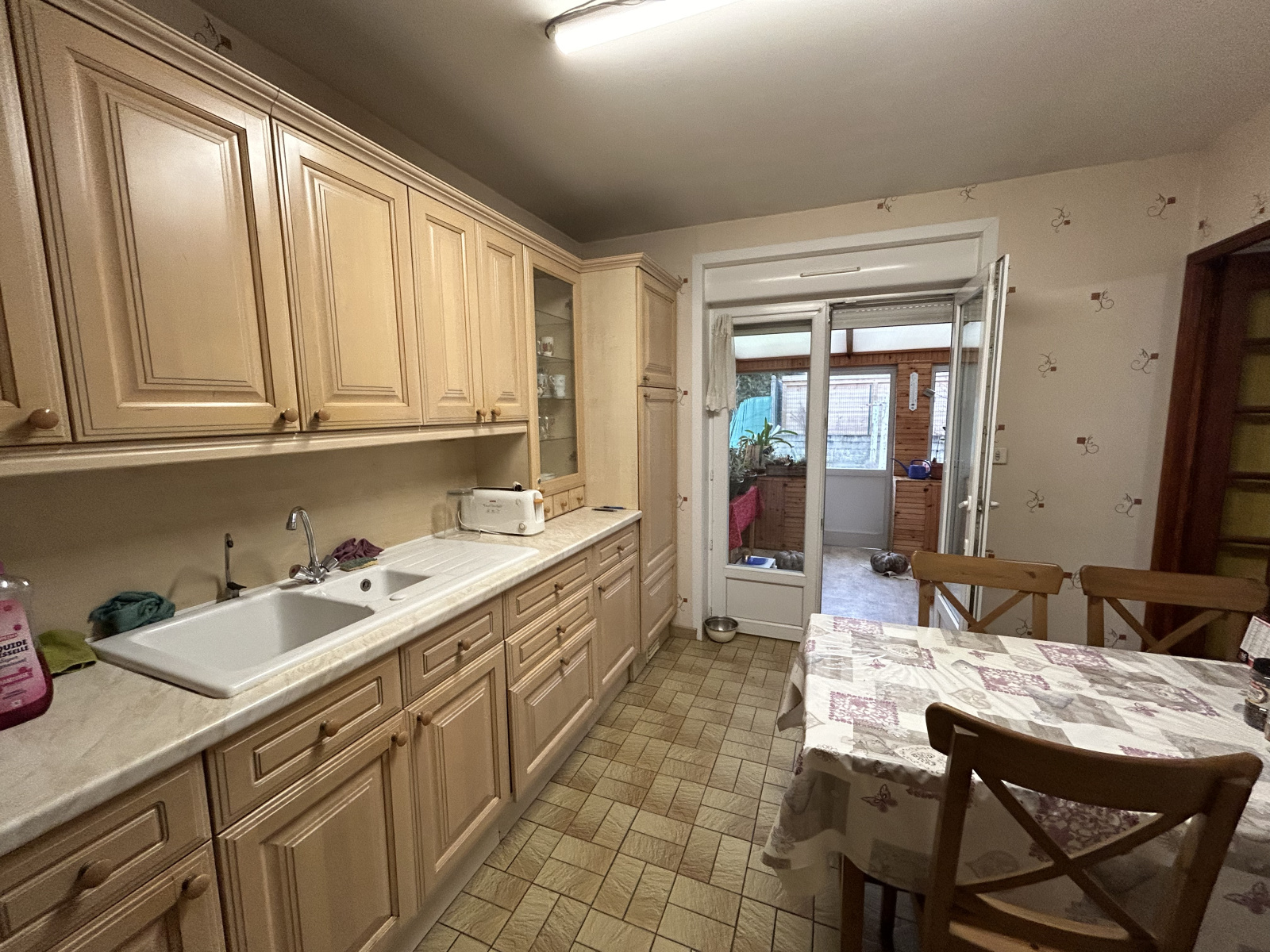 Son entrée nous mène vers un vaste séjour lumineux, une cuisine équipée avec accès à la véranda et au jardin complètement clos.