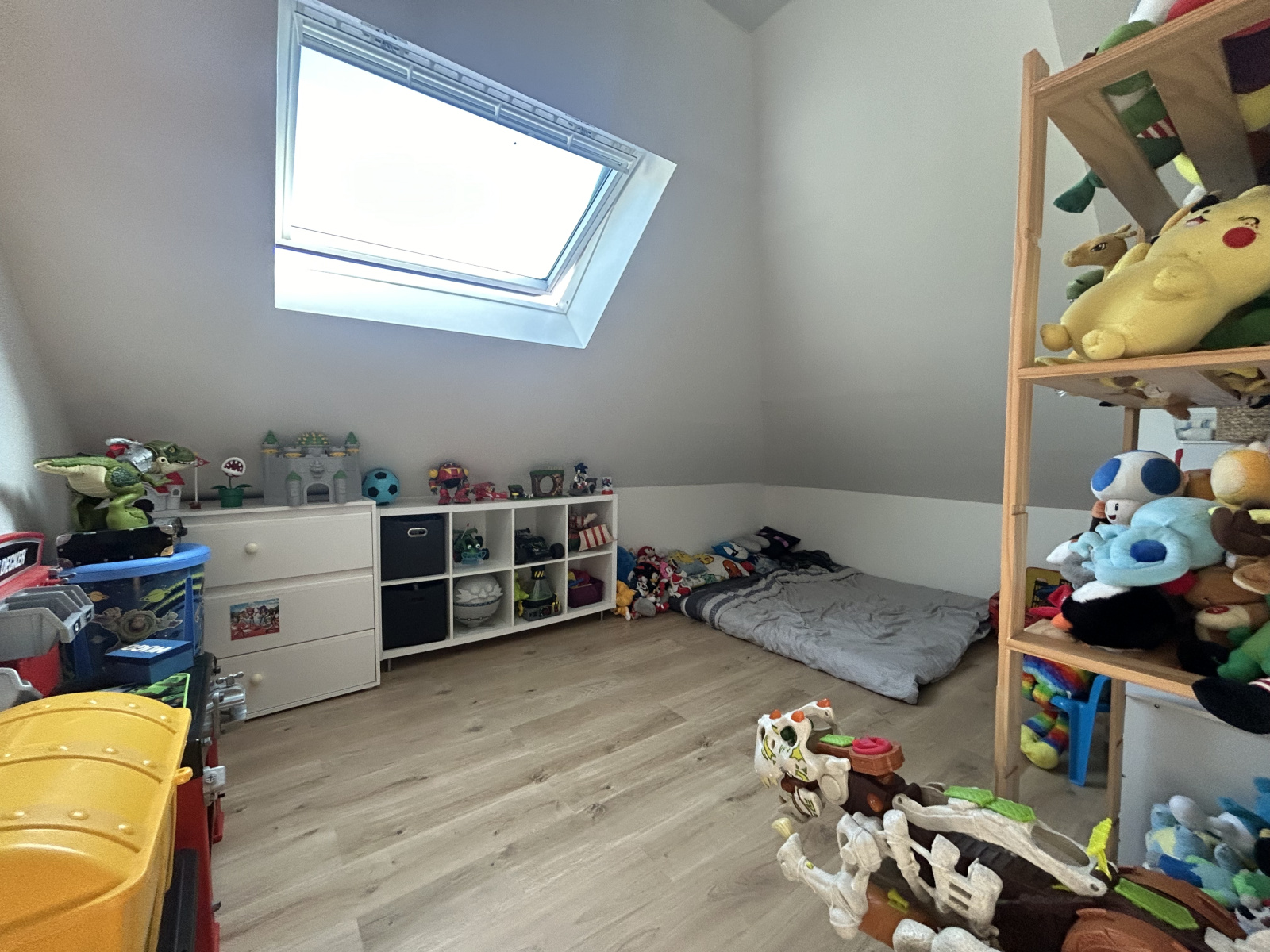 La maison vous accueille dans une vaste pièce de vie lumineuse de près de 35 m² plus cuisine équipée ouverte de 11m2, à l'étage, un vaste palier qui dessert 3 chambres.