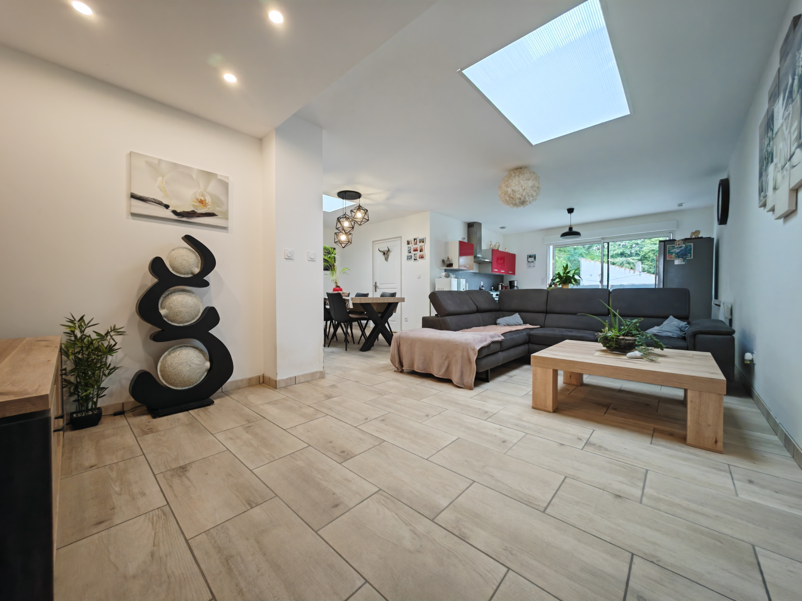 Le rez-de-chaussée vous accueille avec une belle pièce de vie lumineuse de 47 m² comprenant une cuisine ouverte, aménagée, sur un vaste salon-séjour. Vous y trouverez également un cellier pratique et un garage attenant pour faciliter votre quotidien ainsi qu'une chambre et une salle de bains.