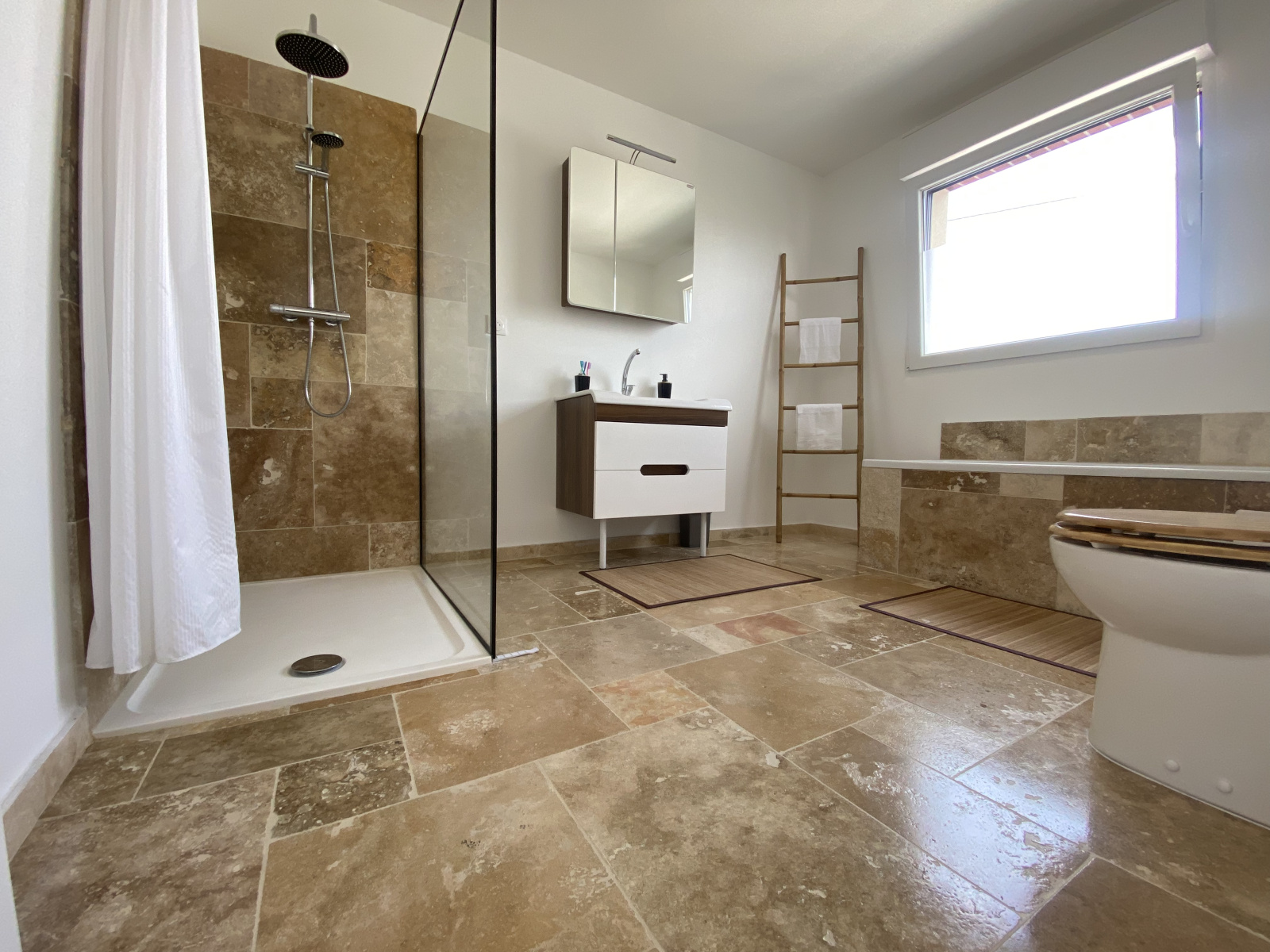 A l'étage 3 chambres, dressing indépendant et salle de bains avec douche et baignoire. Profitez également d'une terrasse donnant sur un jardin clos. Stationnements privatifs pour plusieurs véhicules.