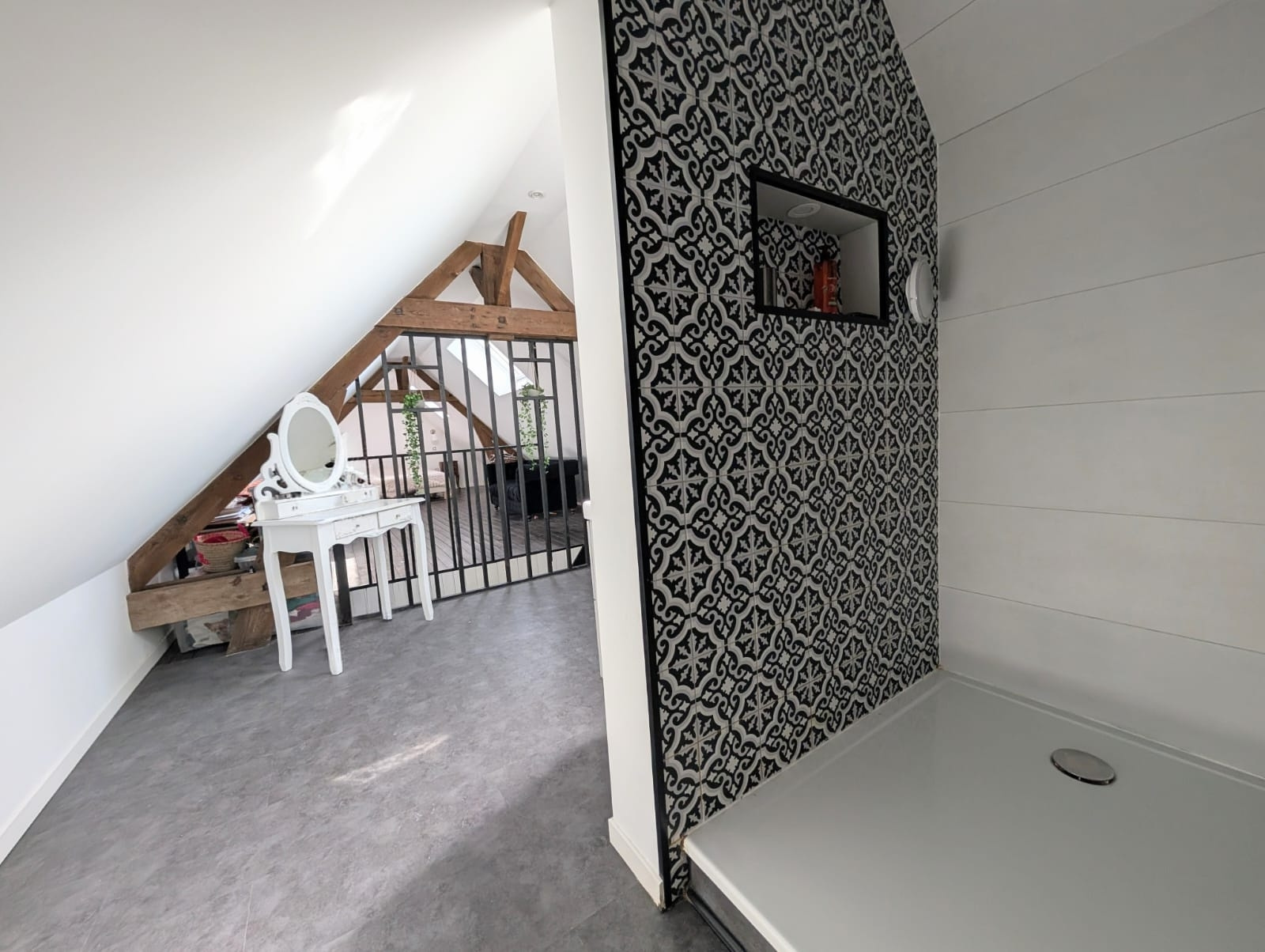 Au second étage : Une suite parentale avec un espace nuit et une salle d'eau.