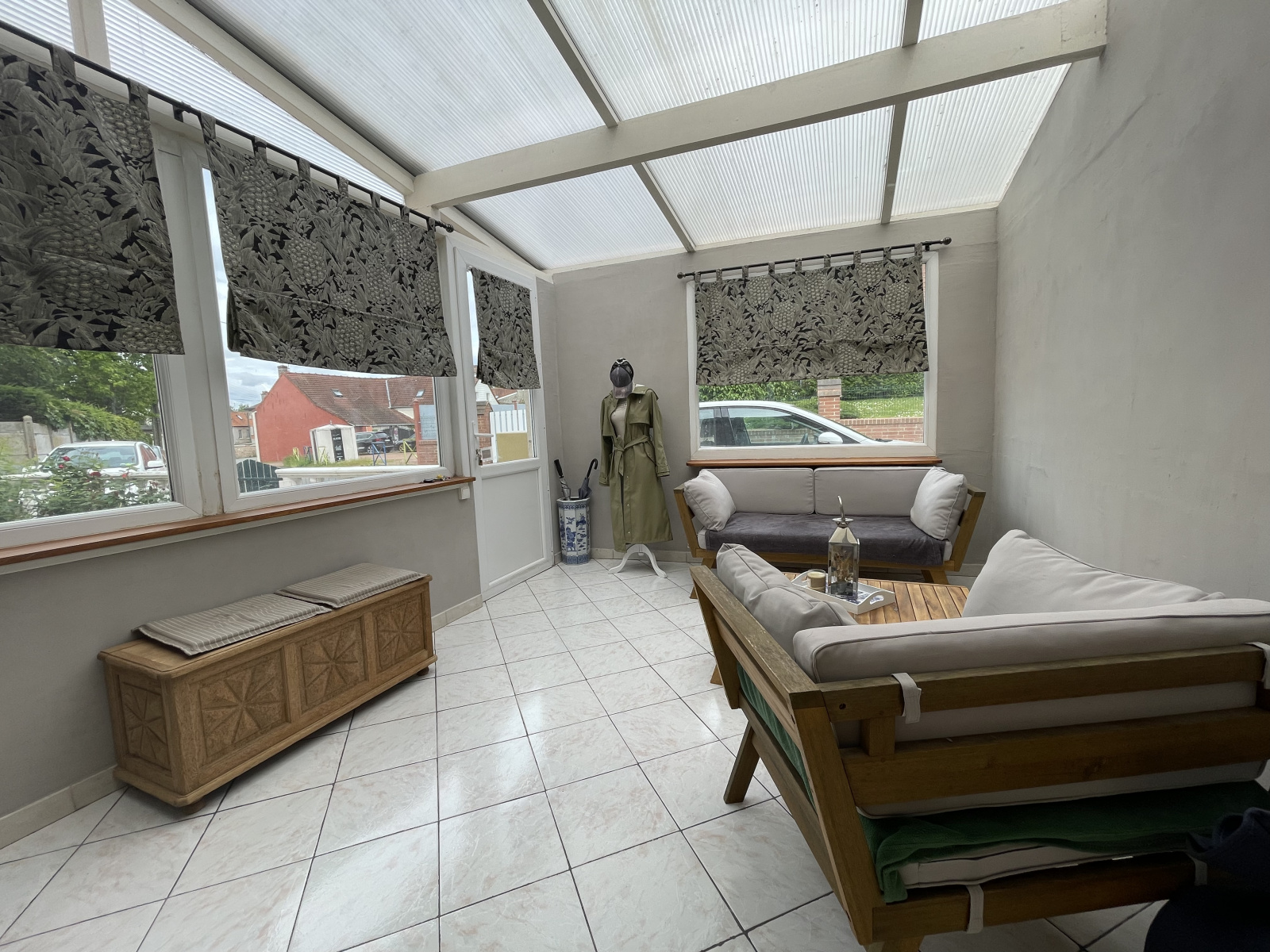 Située en retrait de la route, maison individuelle comprenant un vaste salon-séjour, une cuisine équipée, une salle de bains, une véranda, à l'étage trois belles chambres. Garage et petit exterieur sur l'avant de la maison.
