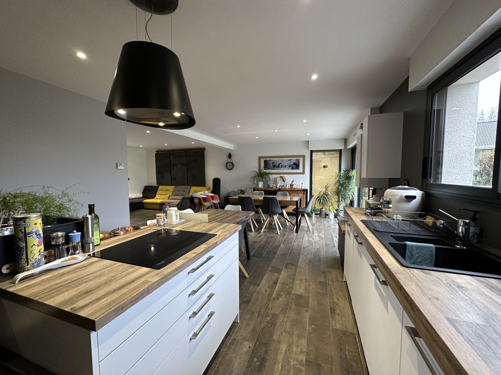 Au rez-de-chaussée vous serez séduit par la lumineuse et spacieuse pièce de vie, un grand cellier, une suite parentale et wc,