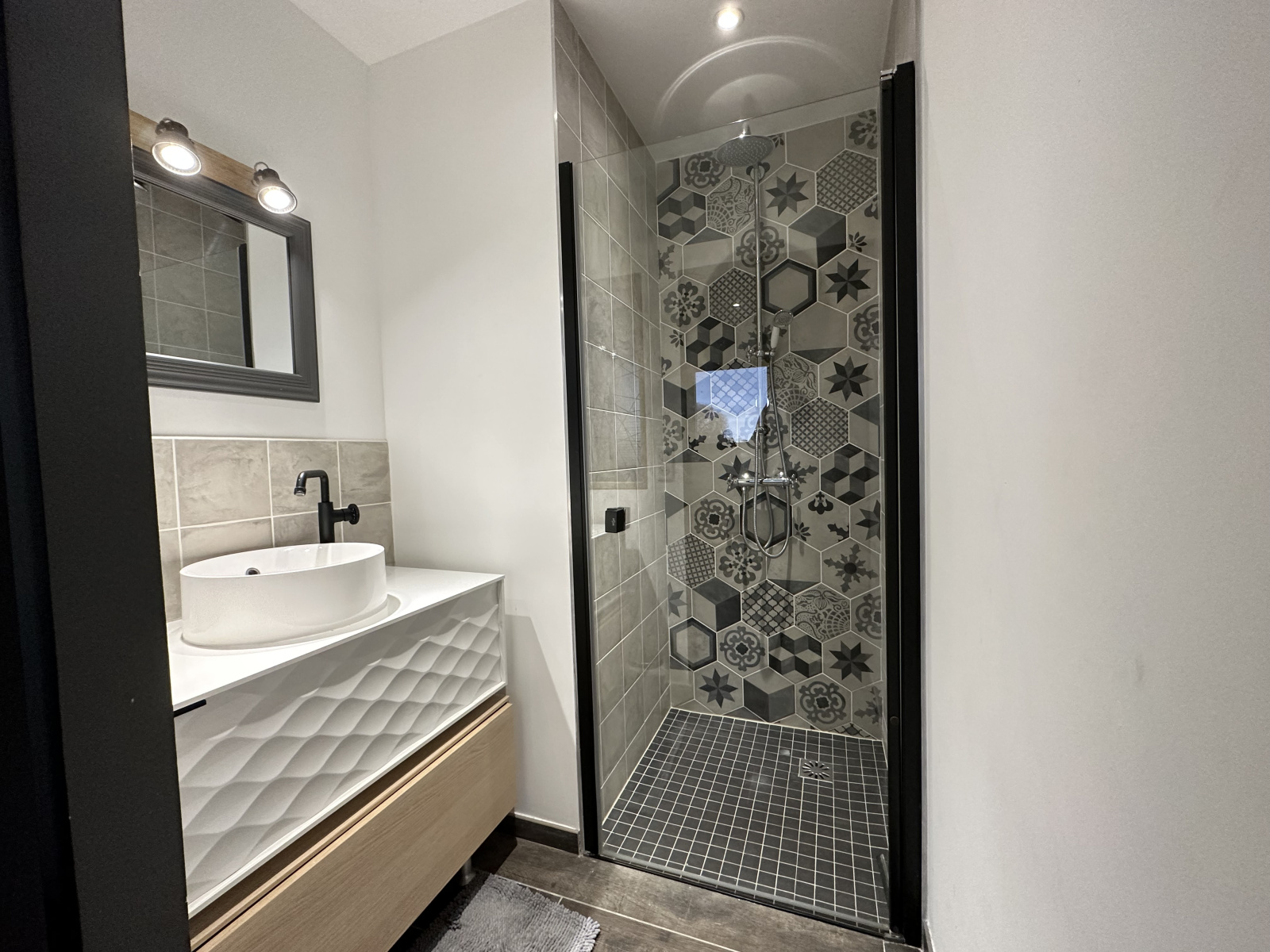 À l'étage un palier desservant 3 belles chambres dont une avec dressing ainsi qu'une salle de bain avec wc.