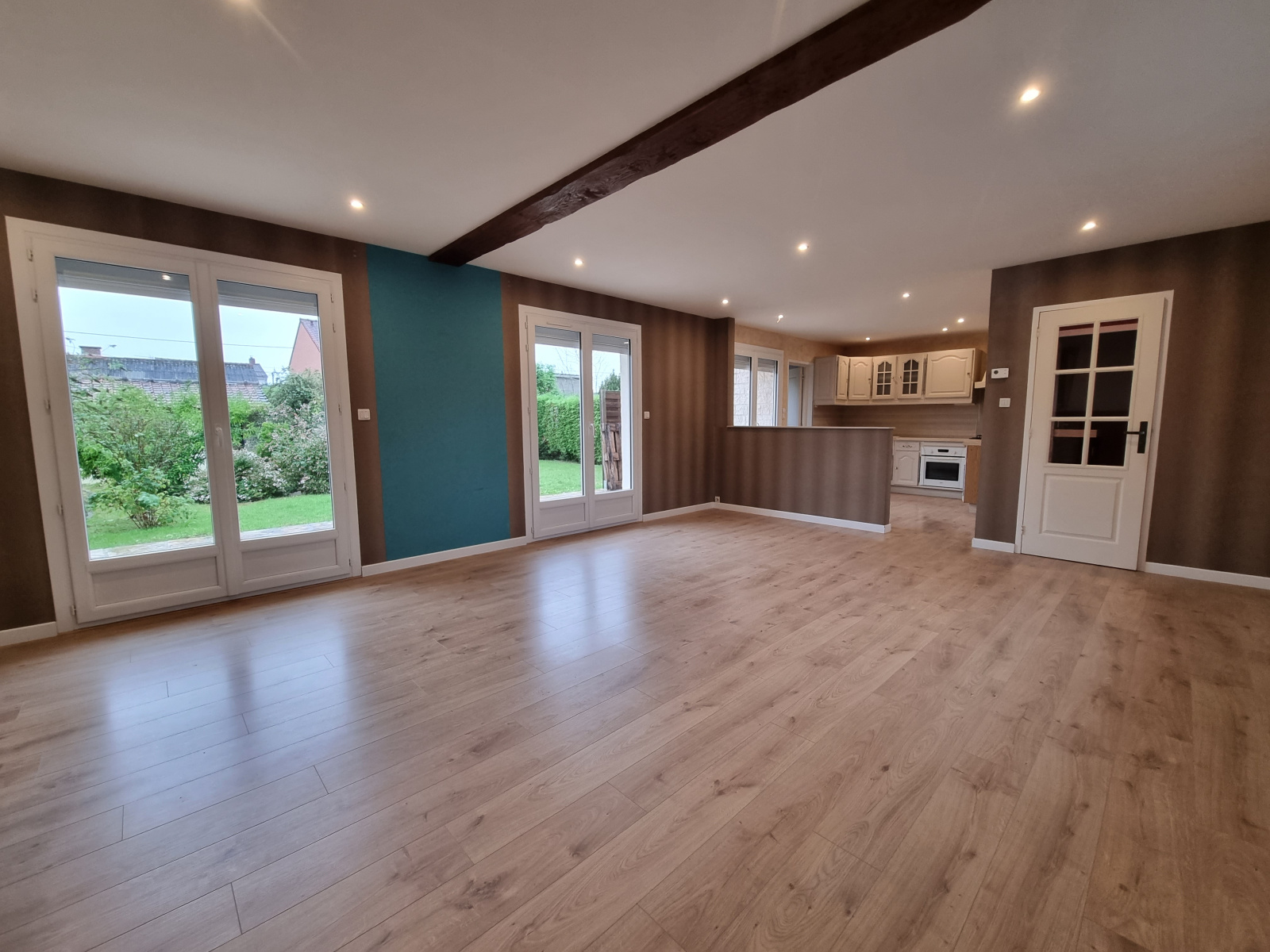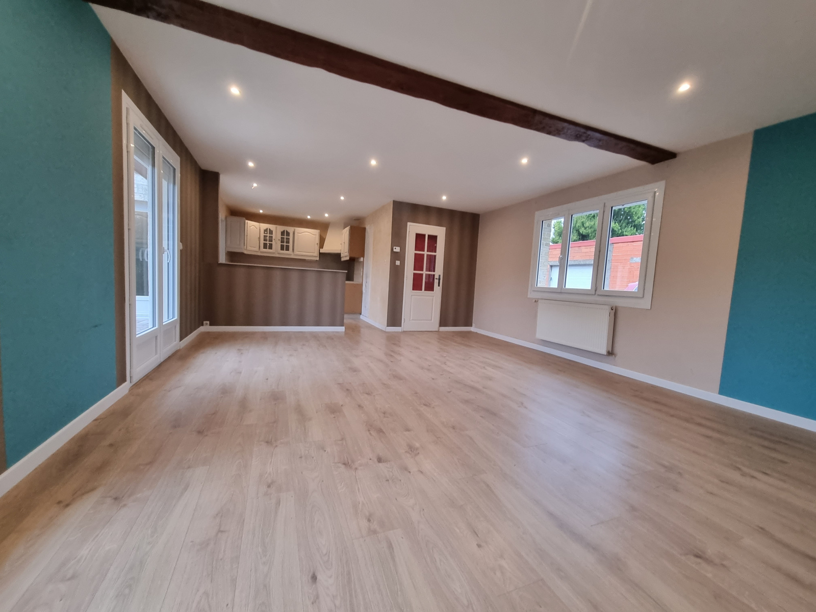 Merville (59660)Nouveauté à découvrir avec votre conseiller LC, Situé dans un secteur calme plain pied entièrement rénové d'environ 90m² habitables comprenant hall d'entrée, cuisine équipée ouverte sur la pièce de vie lumineuse (44m²), 3 chambres, salle de bains, garage de 27m², terrasse exposée plein sud, ainsi qu'un jardin d'environ 400 m².